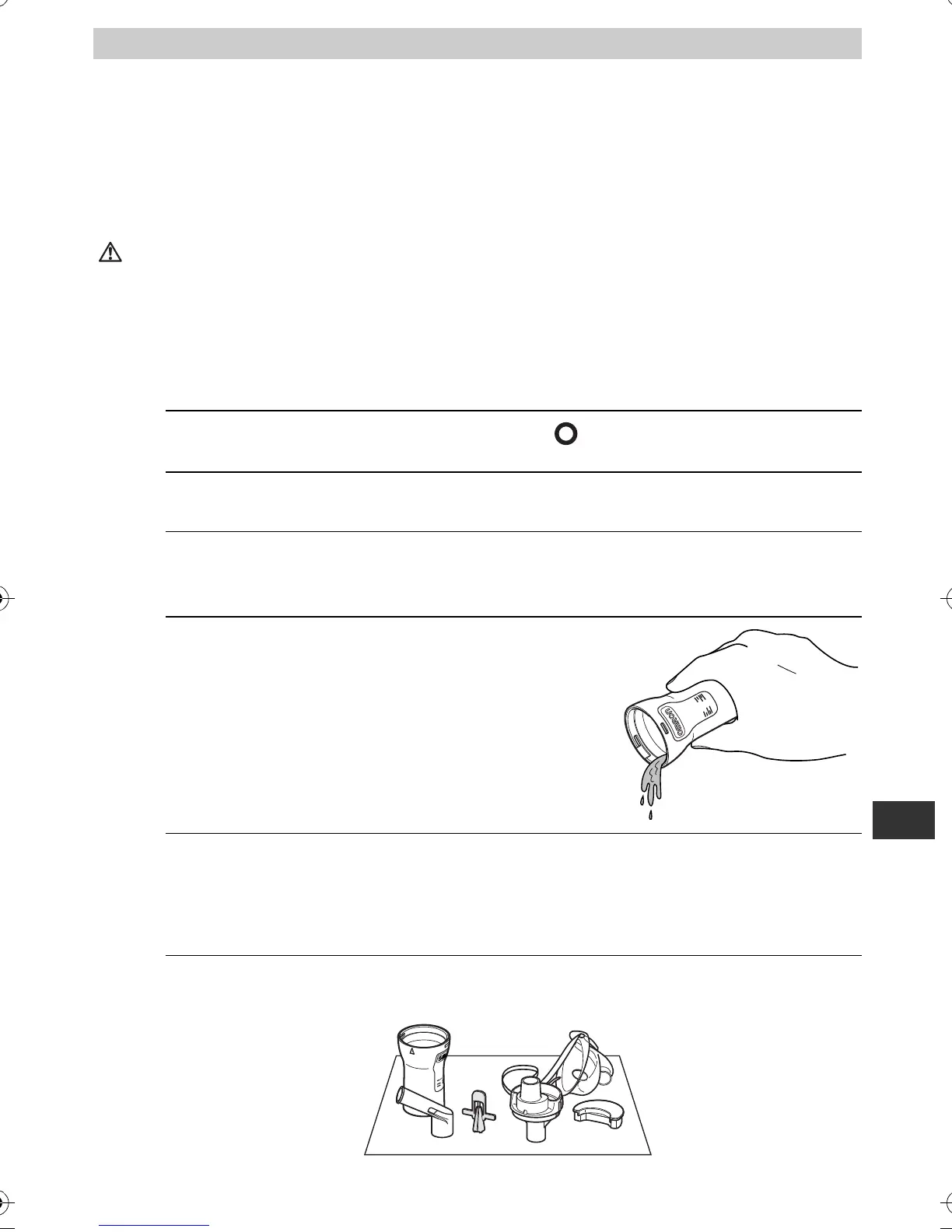 Thoroughly rinse the nebuliser and the mask, nosepiece or mouthpiece with