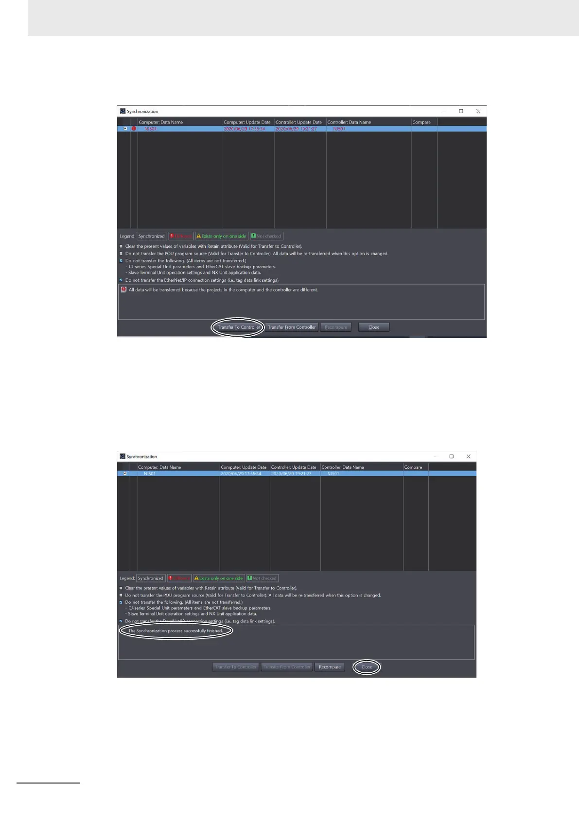 3 Confirm that "The Synchronization process successfully finished." is diaplayed, and then click