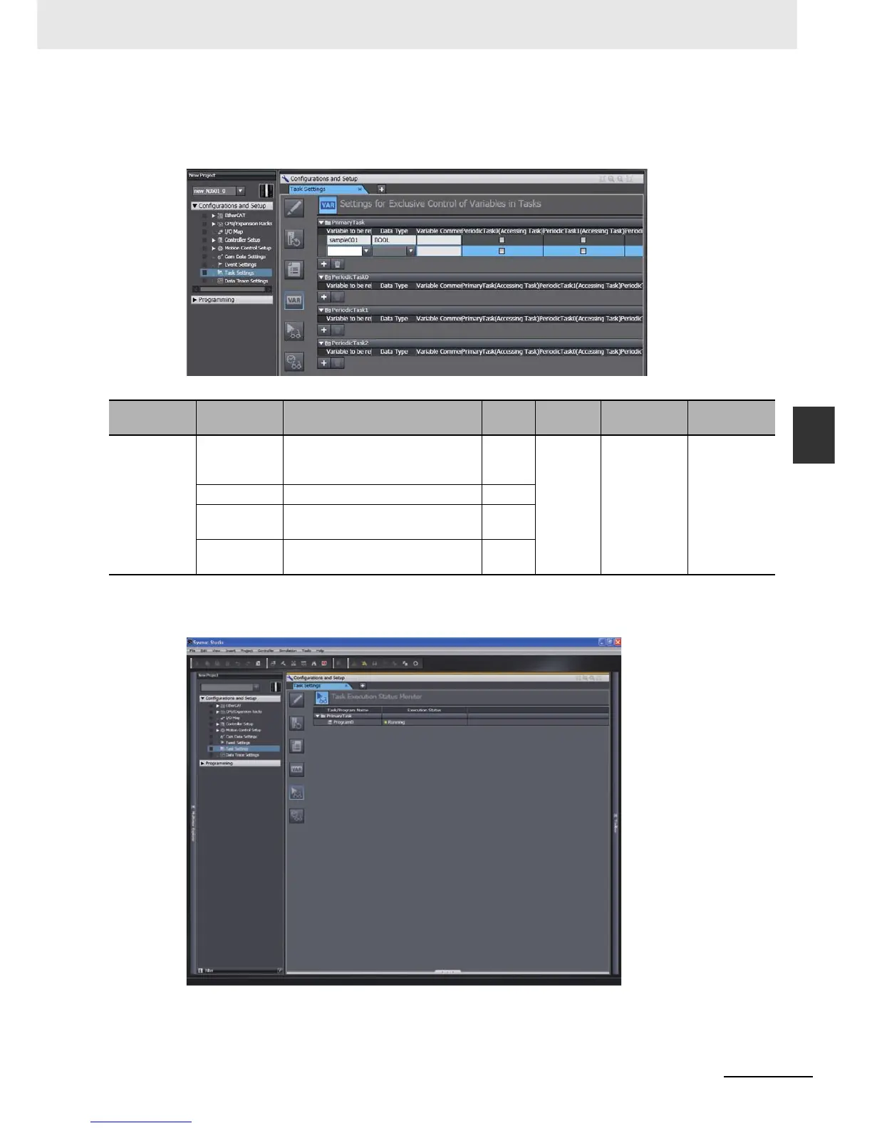The Settings for Exclusive Control of Variables in Tasks are used to set the tasks that refresh speci-