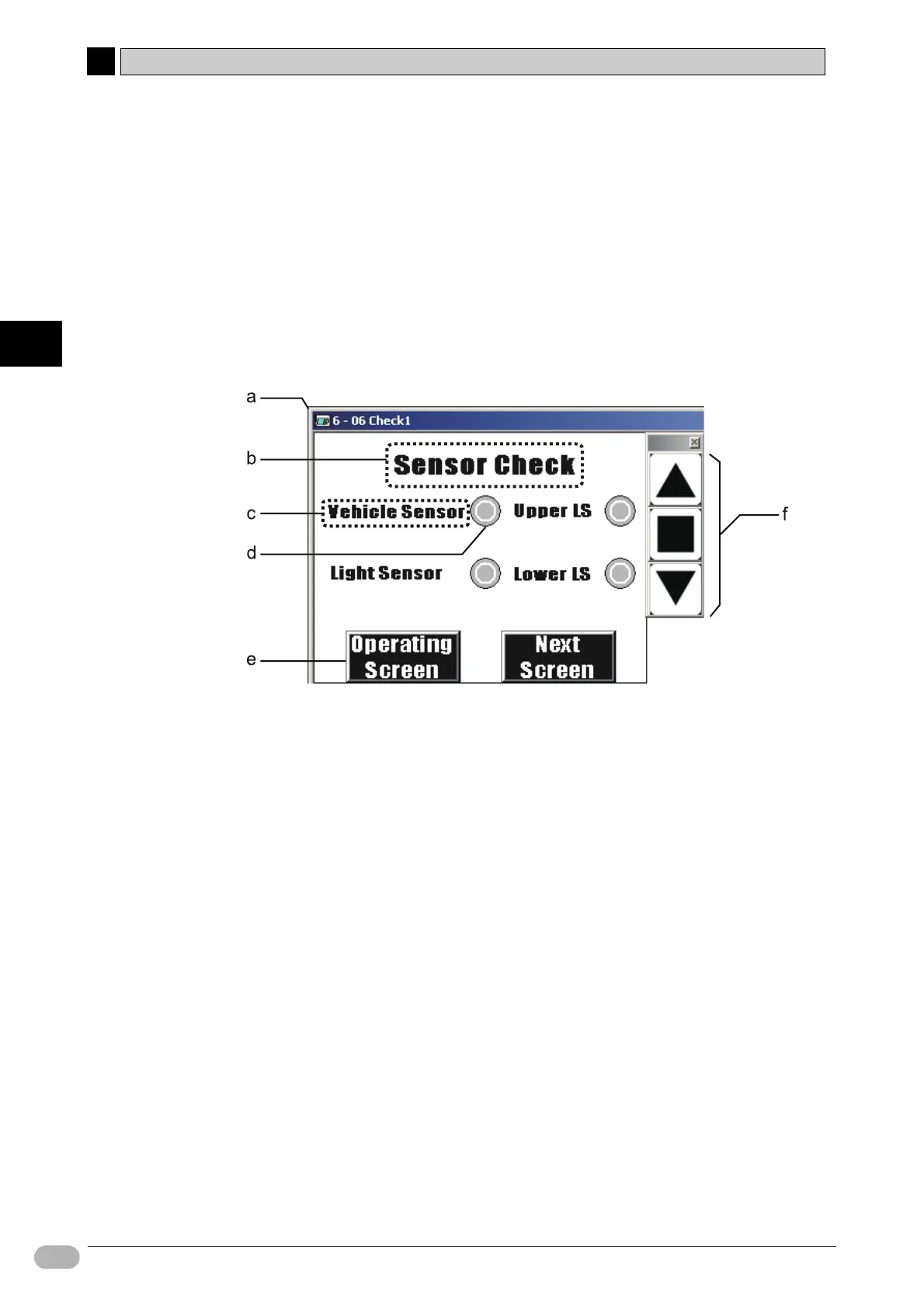• Buttons are used to switch to the [01 Waiting] and [07 Check2] screens.