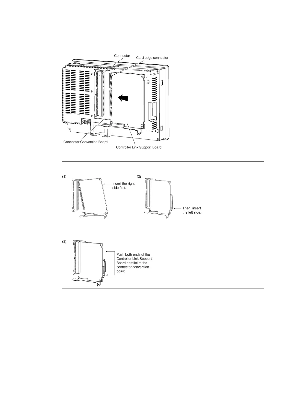 3. Insert the Controller Link Support Board’s card edge connector into the Connector