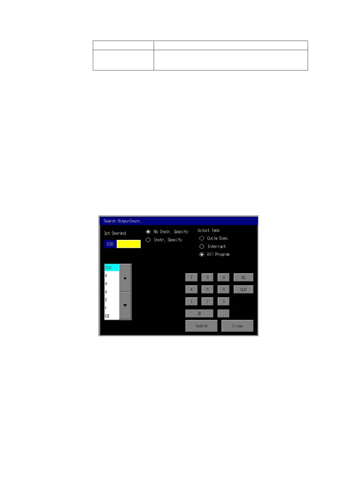 1. Press Search –Search OutputInstr. to display the following dialog box.