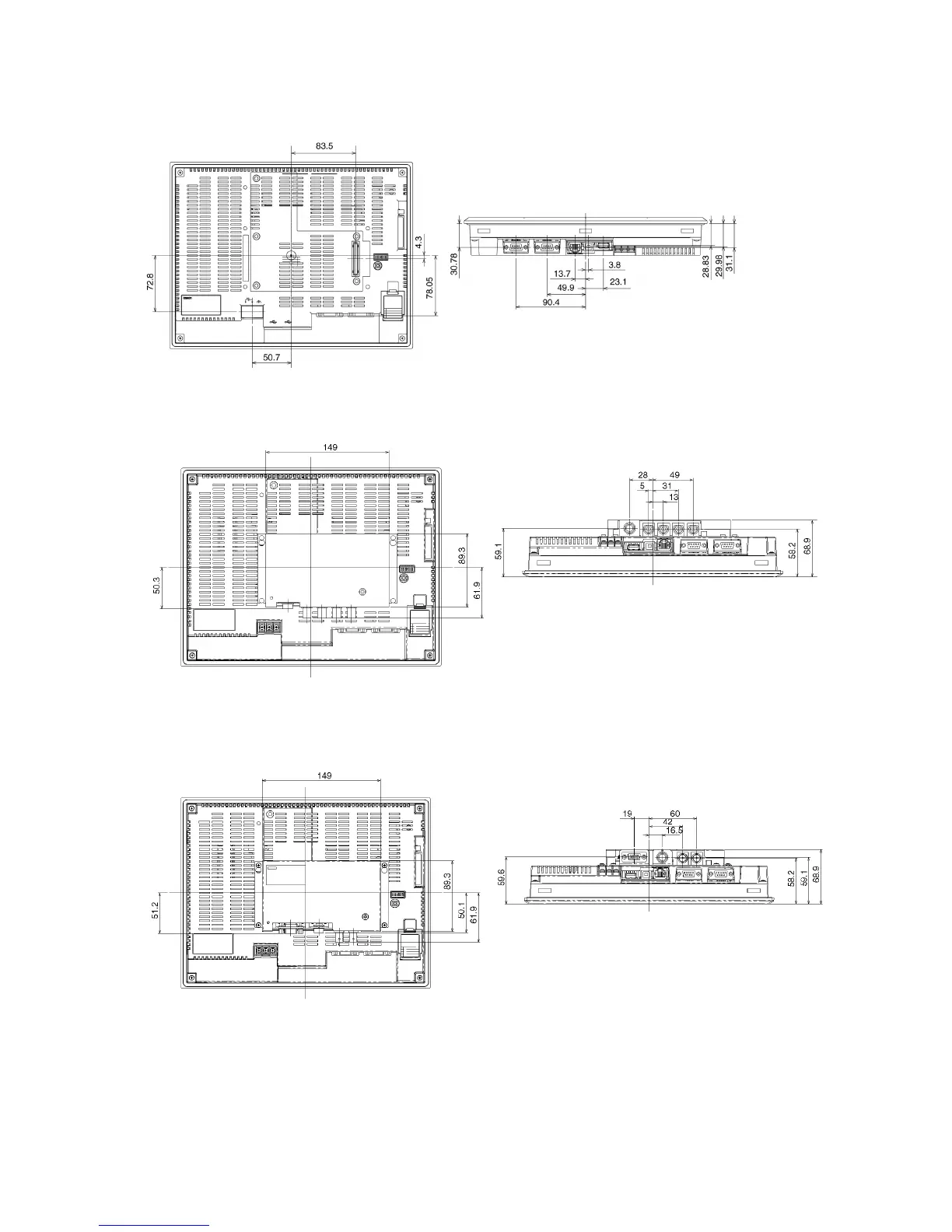 NS12-V1/-V2 and NS10-V1/-V2 Video Board (NS-CA002) Mounted Dimensions