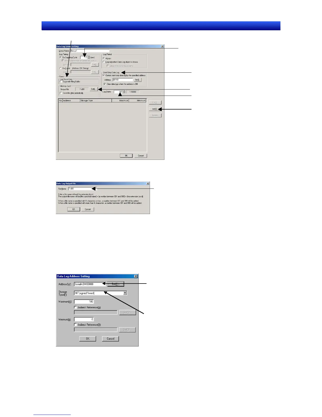 10. Click the Add Button to display the Data Log Address Setting Dialog Box.