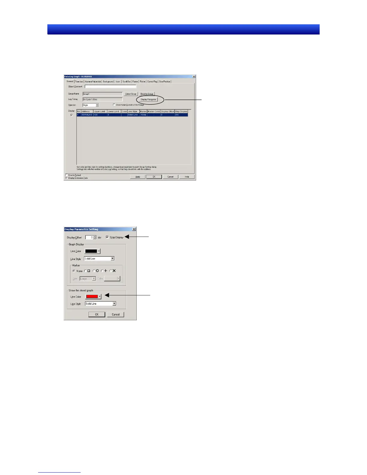 3. Select the address from the data log address list, and double-click it, or click the Display Parame-