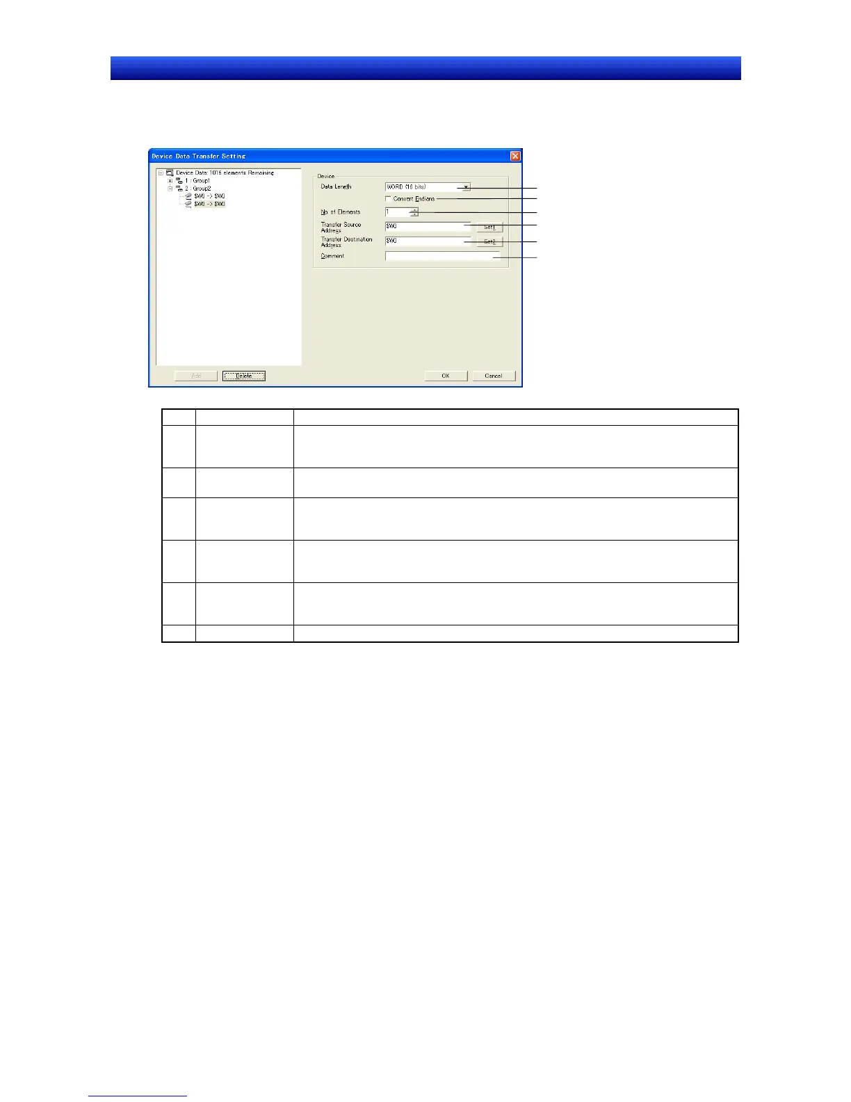 Select the device data transfer setting table and click the Add Button. A device data transfer setting