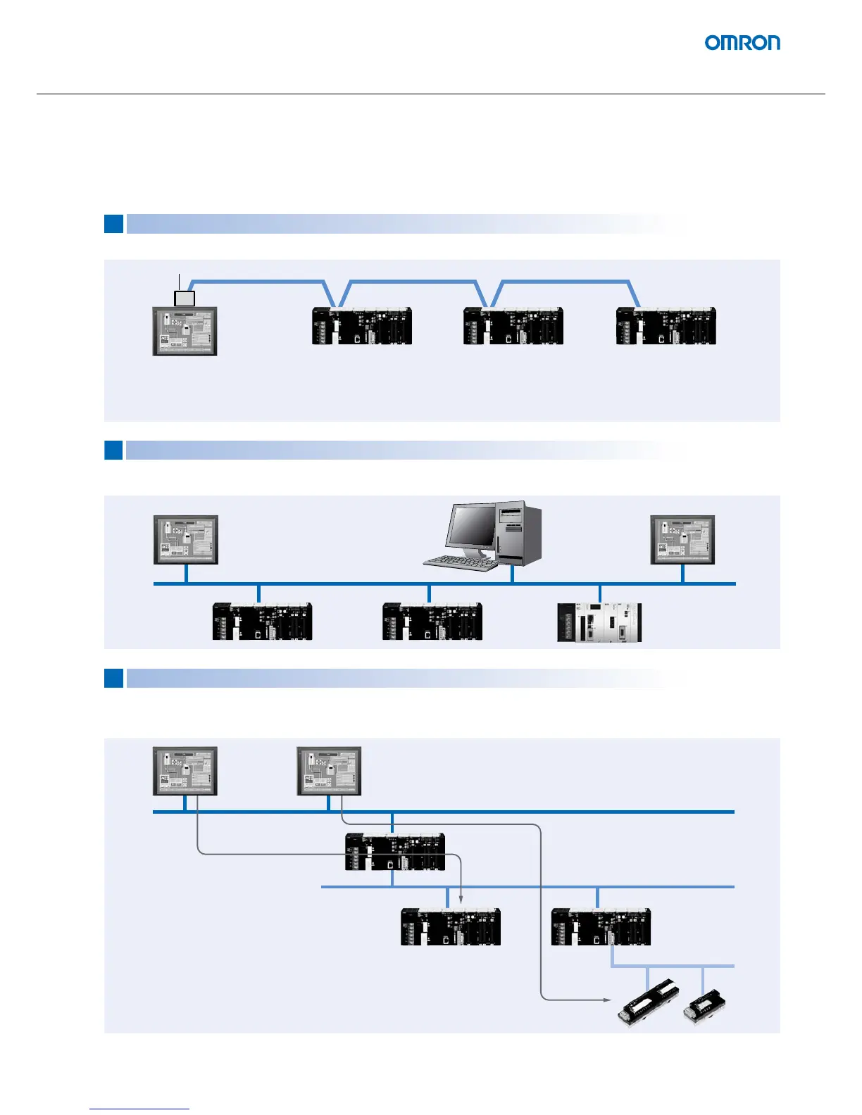 The NS-series HMI can connect to a variety of devices in the network, through as many as 3 network levels. For example, if SAP (Smart Active