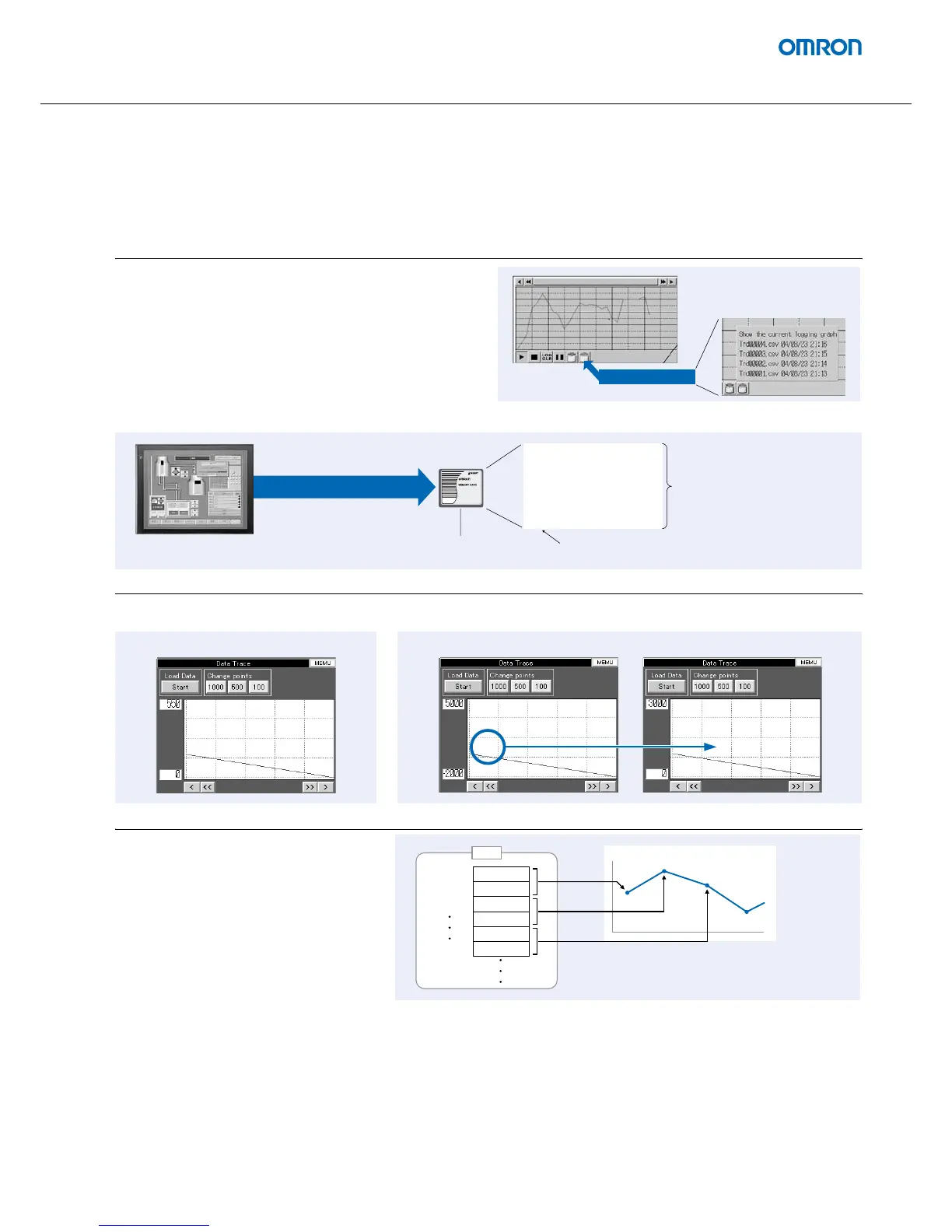 Data stored/logged by the PLC can be displayed in overlapping graphs, so a device's operation can be compared for evaluation and analysis. In
