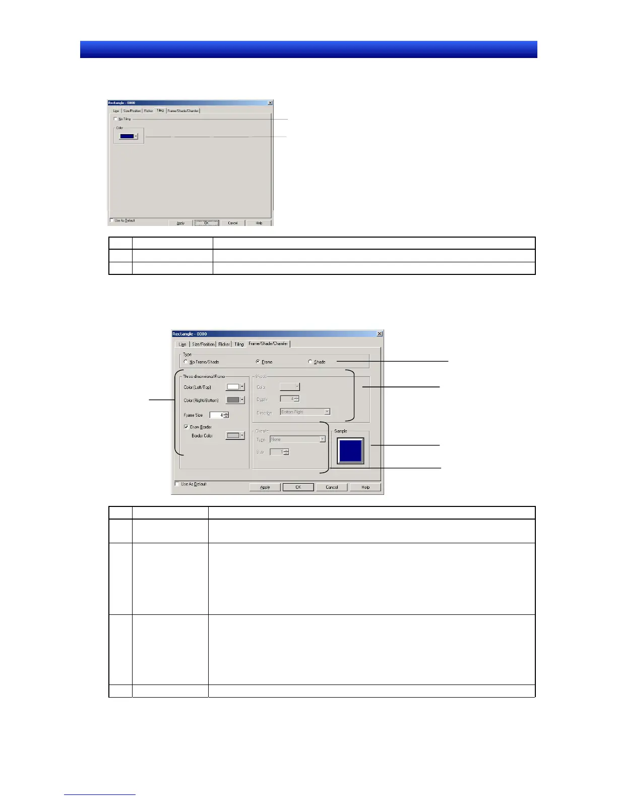 Specify the frame, shading color, size, and bevel setting for the three-dimensional display of fixed