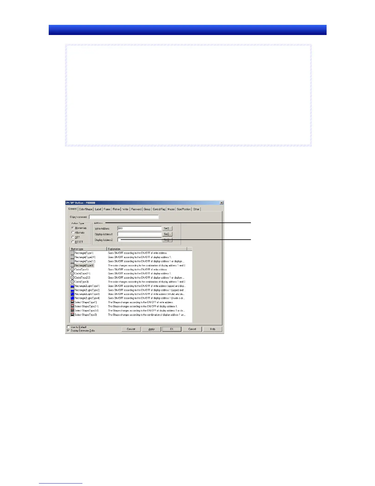 display address 2 are set on the General Tab Page for an ON/OFF Button.
