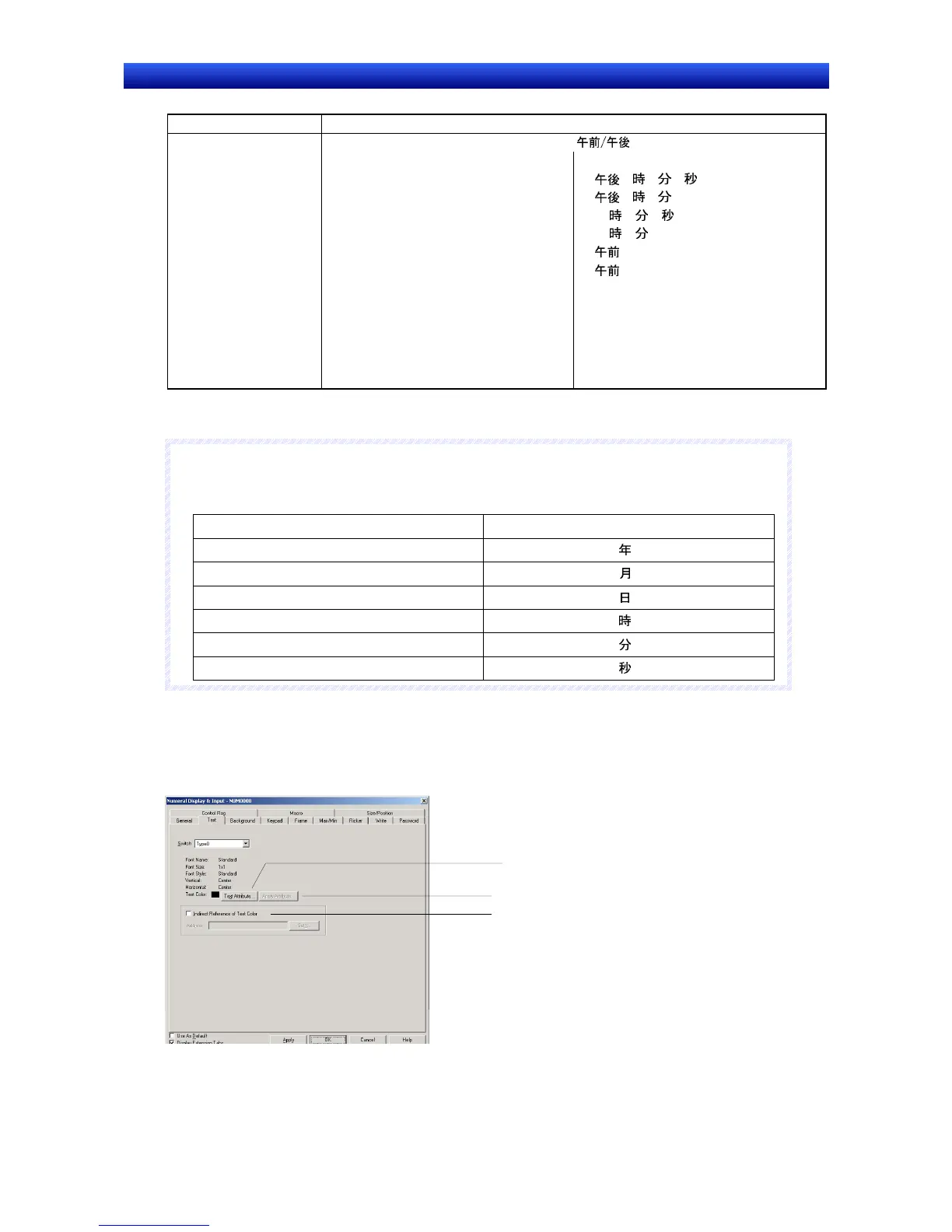 Depending on the settings at the CX-Designer, the Japanese characters shown below will be