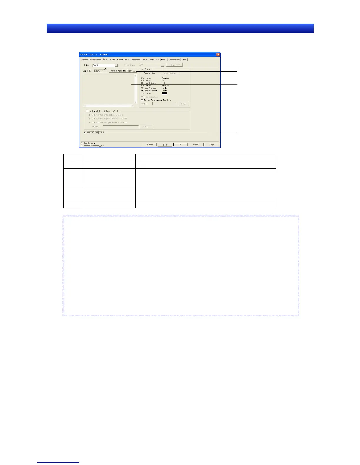 4 Use the String Table Deselect this option to directly input and set the label string.