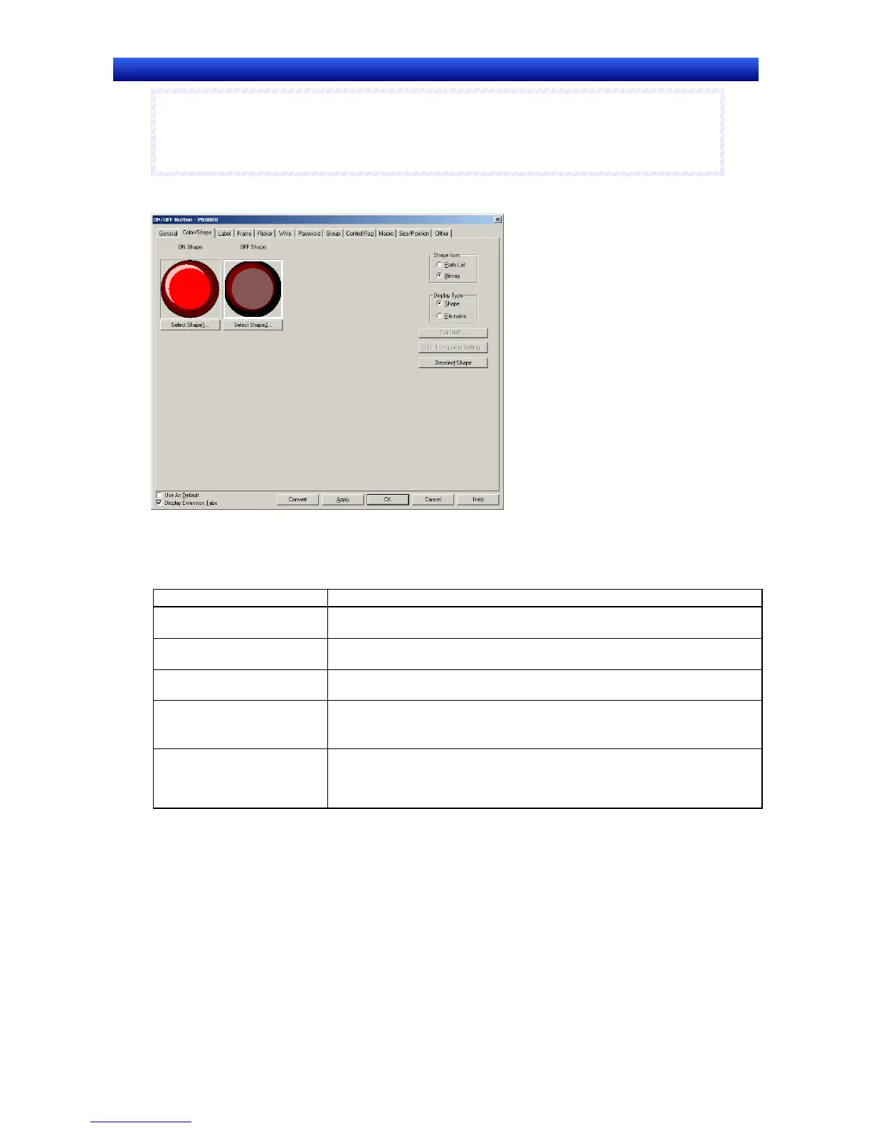 If shapes with ON/OFF pairs are specified, the shape for OFF (shapes 2 or 4) will be automatically