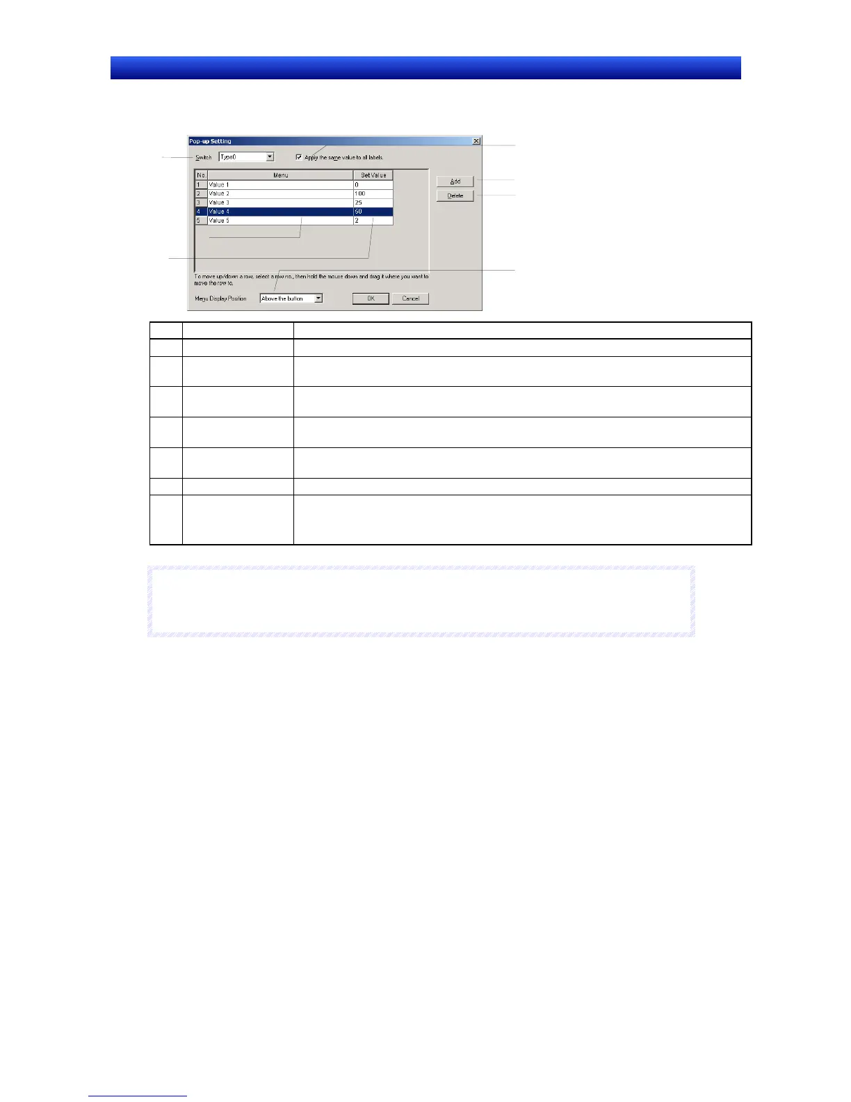 Sets one of the following display positions for the pop-up menu.