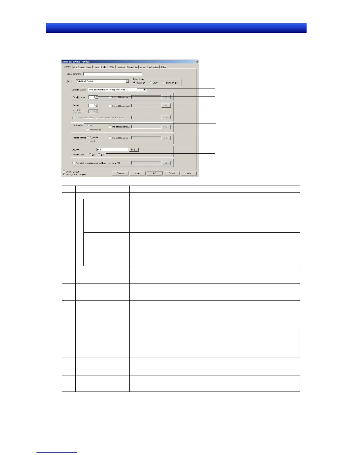Control content Specifies the control operation to be performed when the command button is pressed.