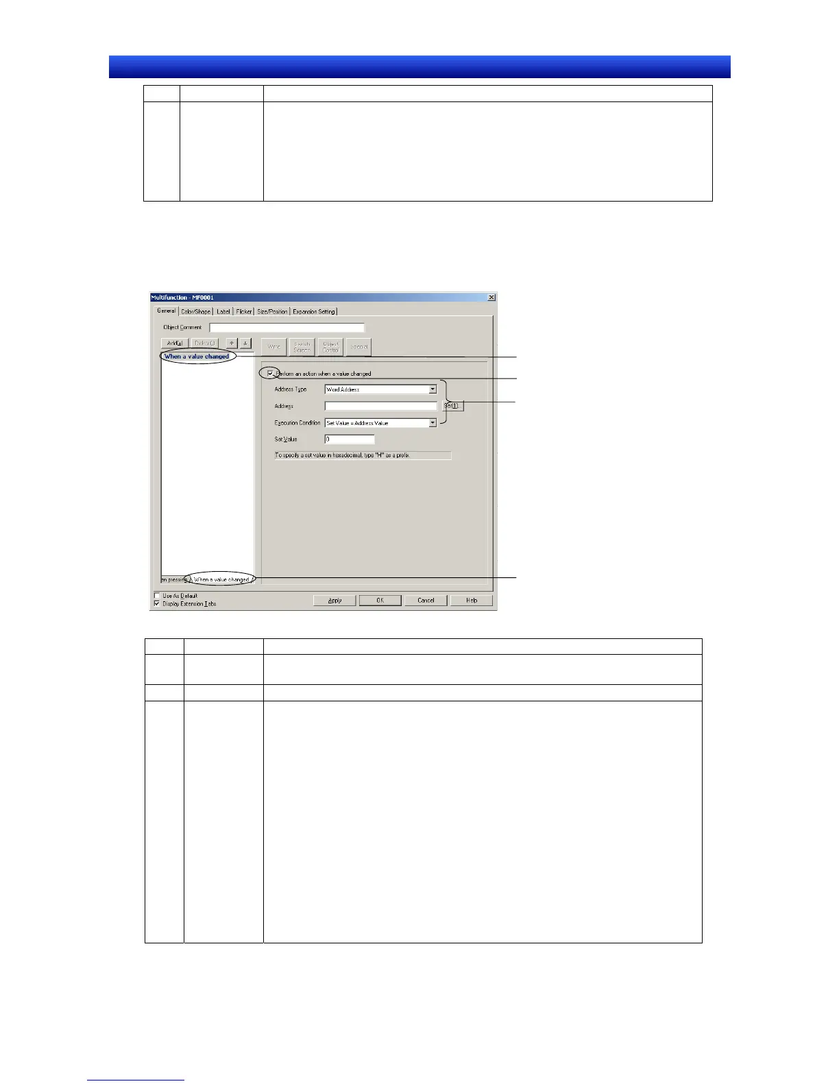 3. Select the Perform an action when a value changed Checkbox. (This checkbox is OFF by default.)