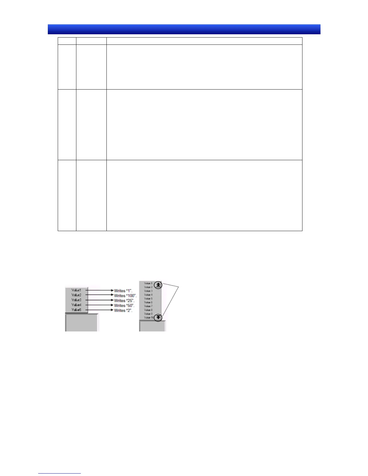 When the button is pressed, a pop-up menu will be displayed and the write value can be selected from