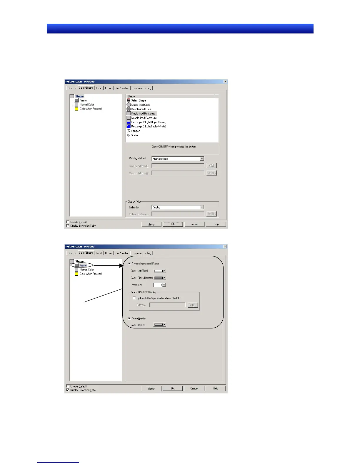 1. Displays the setting items in the Color/Shape List corresponding to the selected Shape and Display