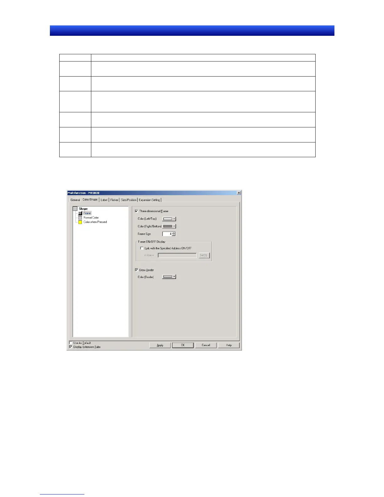 Specifies the frame color and size and changes the shape and color of the button. Refer to Frames in