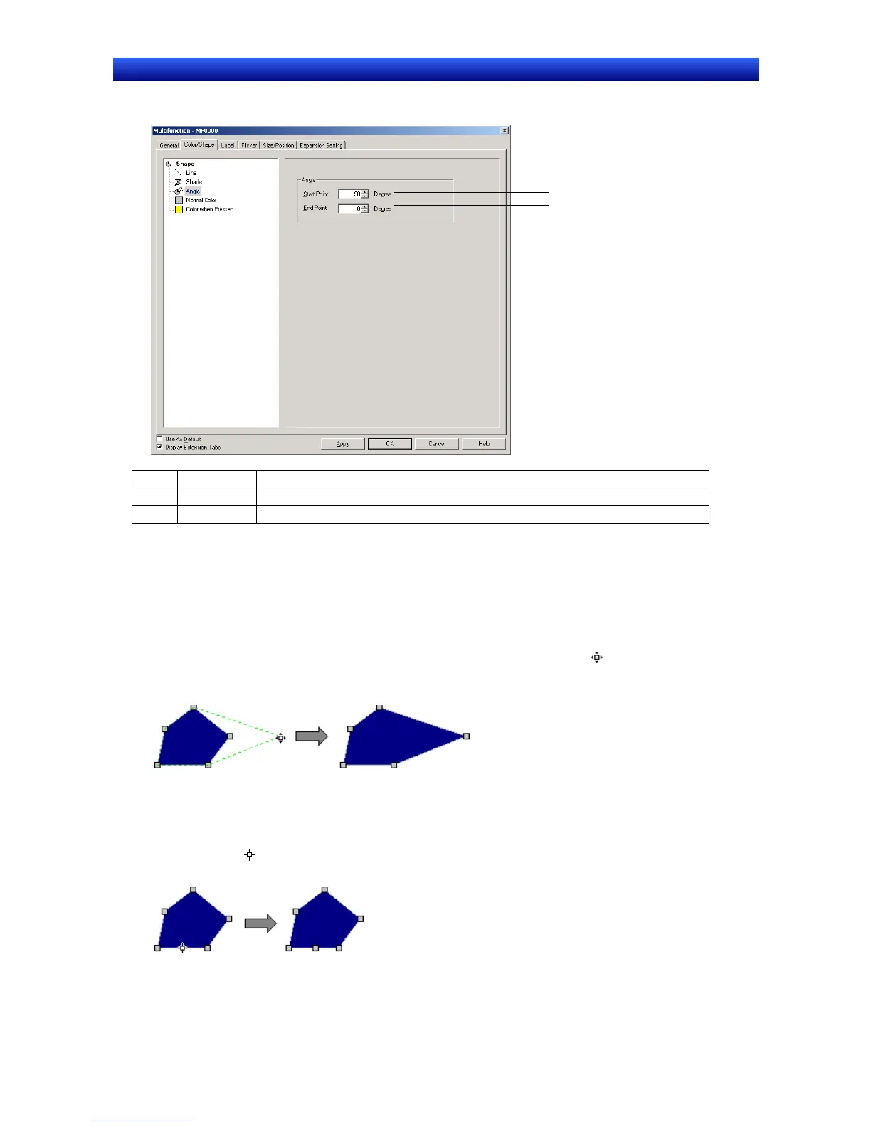 When Polygon or Sector is selected, the shape can be changed using the following method.