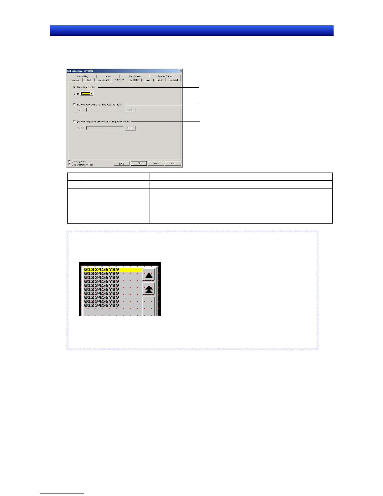 Sets the selection bar color that is reversed during list selection and the address where the selected