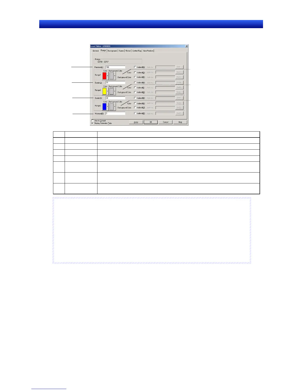 Sets the maximum, minimum, borders, and colors for ranges 1 to 3.