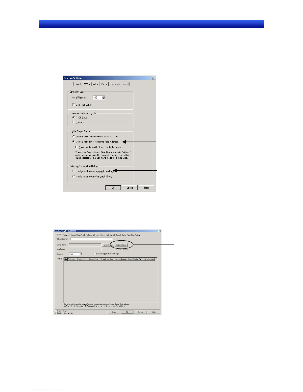 4. Set the Data Log/Broken-line History to “Hold data of always logging (Data Log).”