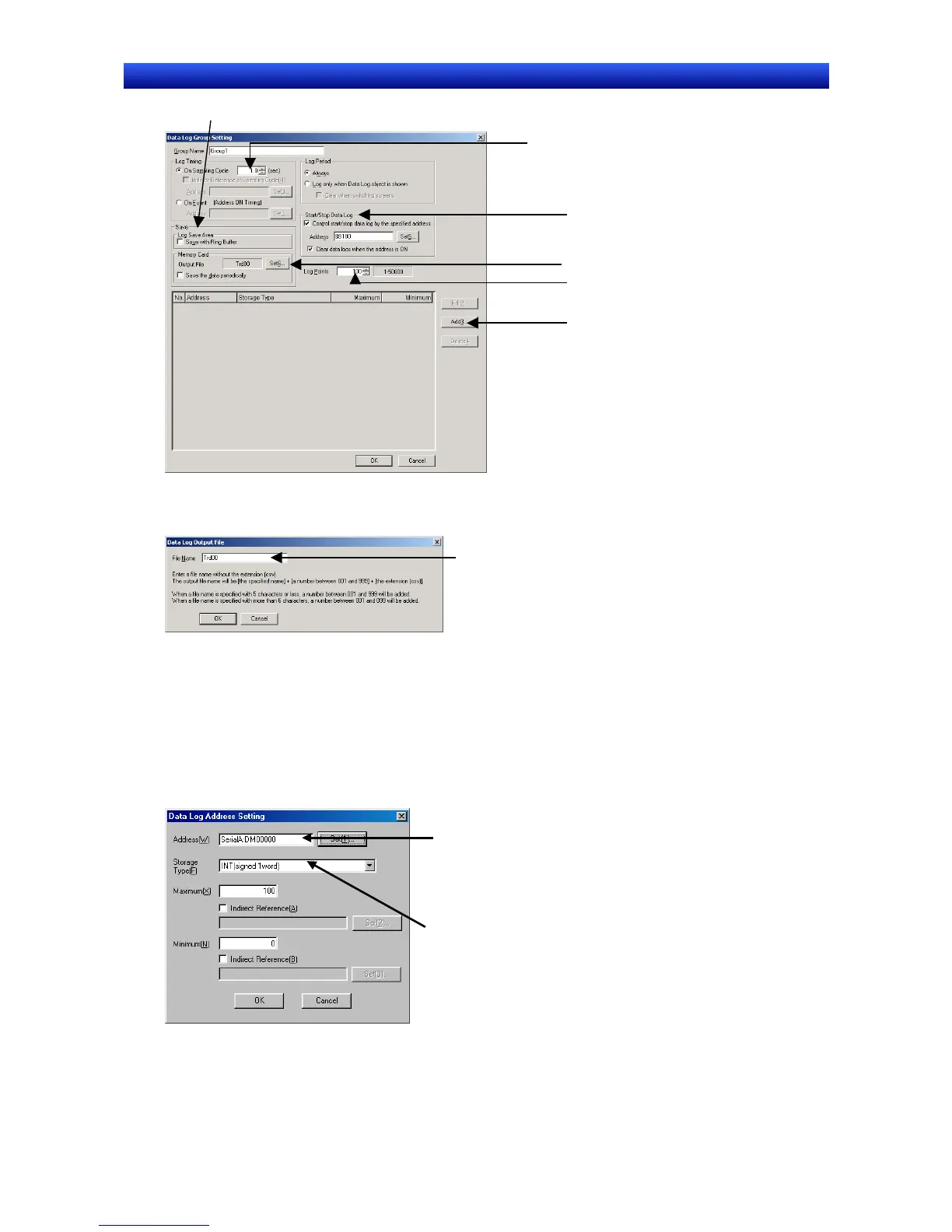 10. Click the Add Button to display the Data Log Address Setting Dialog Box.