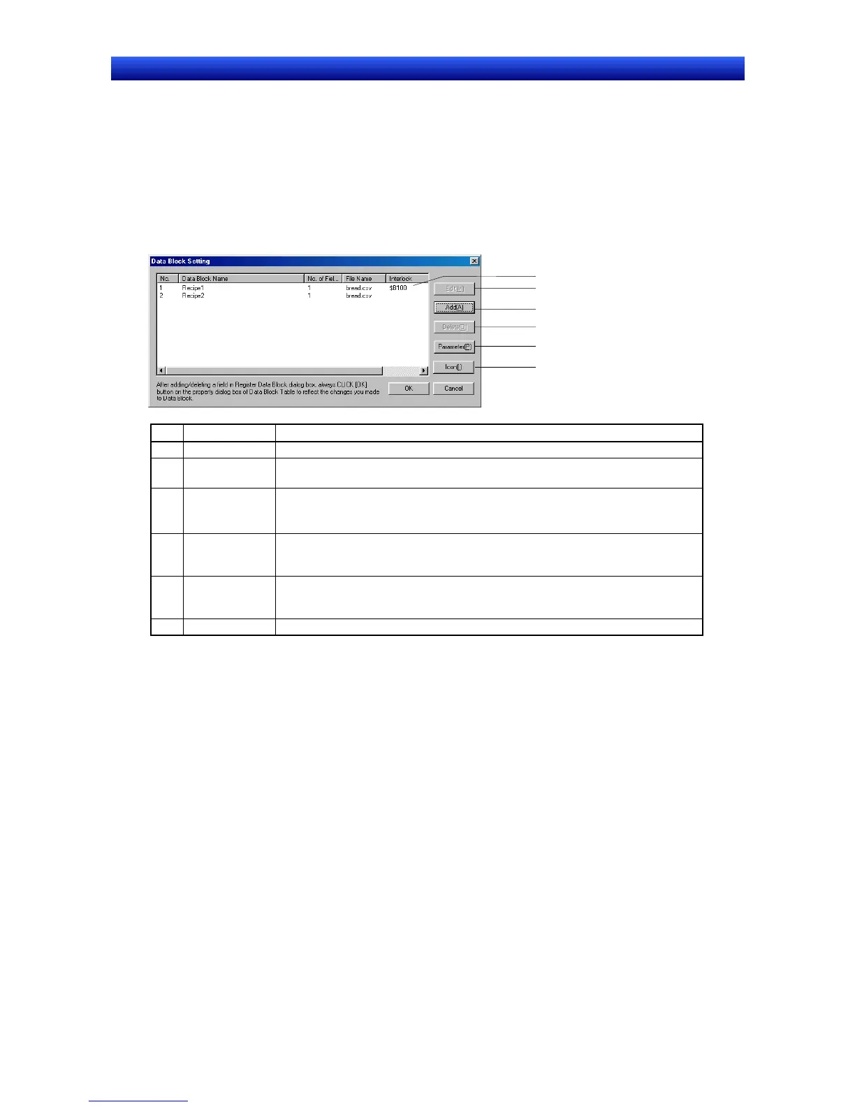 The Data Block Setting Dialog Box will be displayed. Data blocks can be added, edited, and deleted