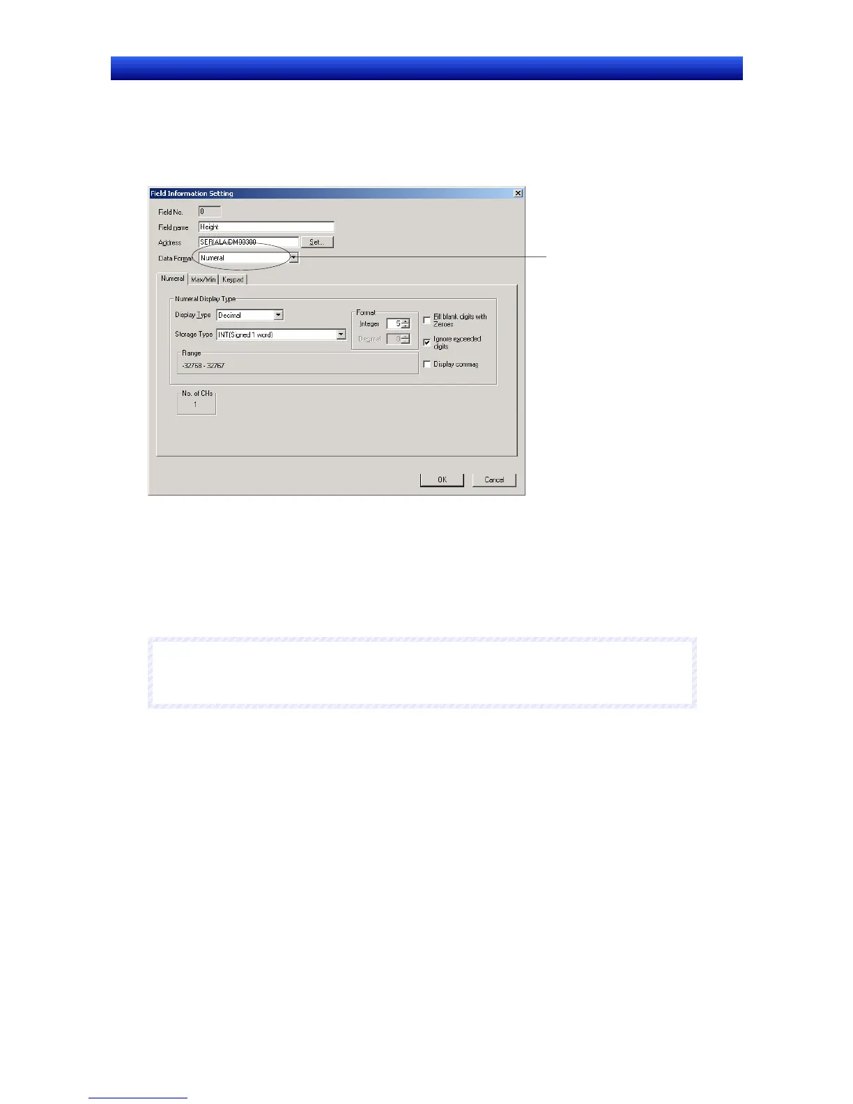 The detailed settings for each tab page are the same as for Numeral Display & Input objects. Refer to