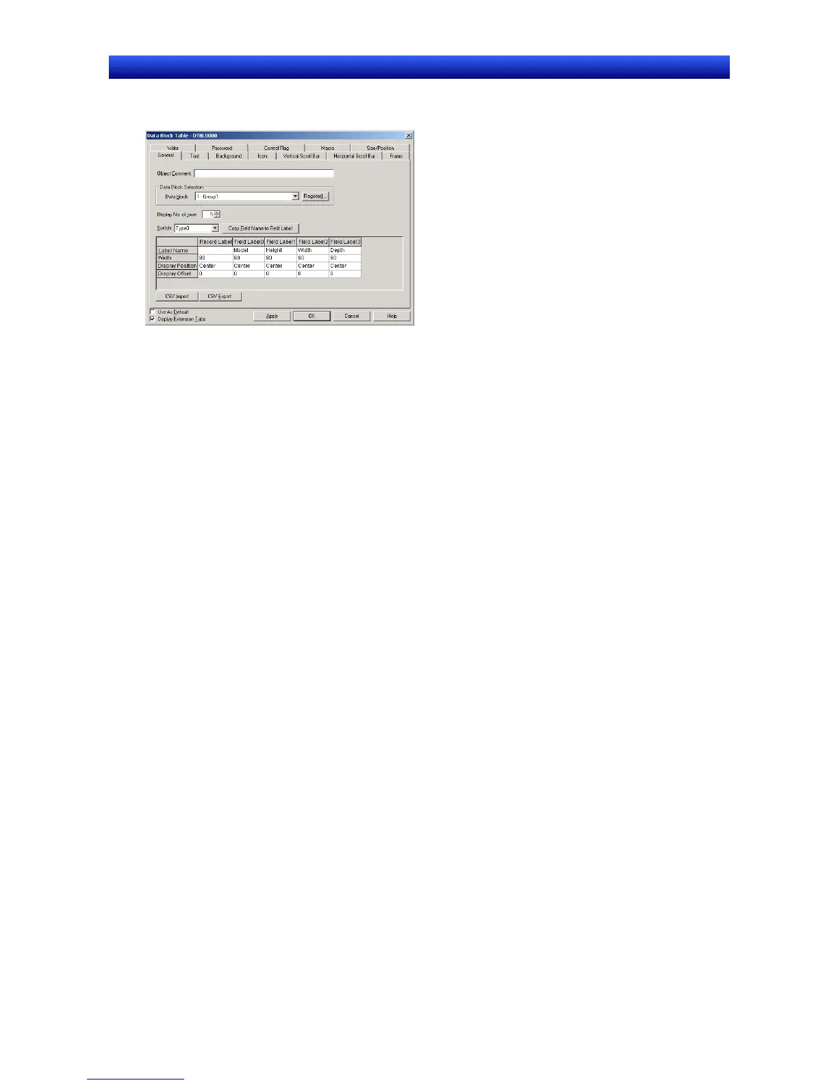 This section explains the properties set for data block tables in the Data Block Table Dialog Box.