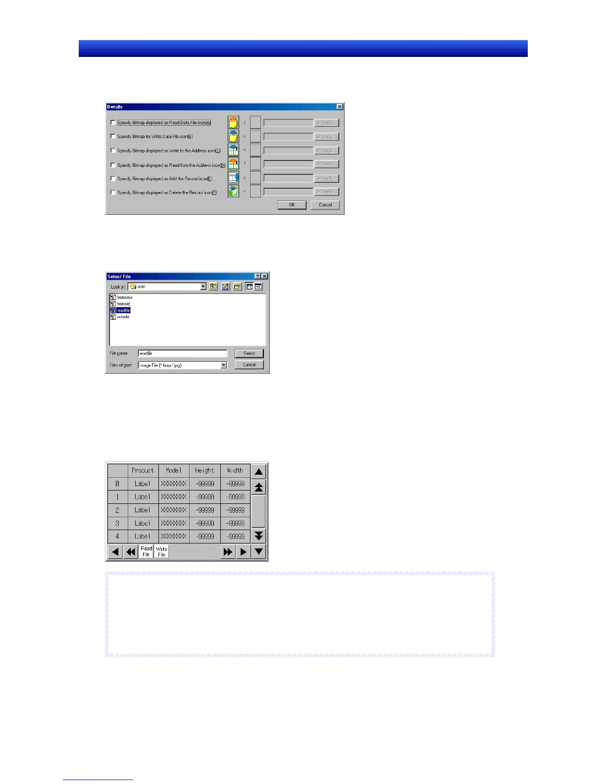 3. Select the check box for the icon to which a bitmap is to be specified and click the Browse Button.