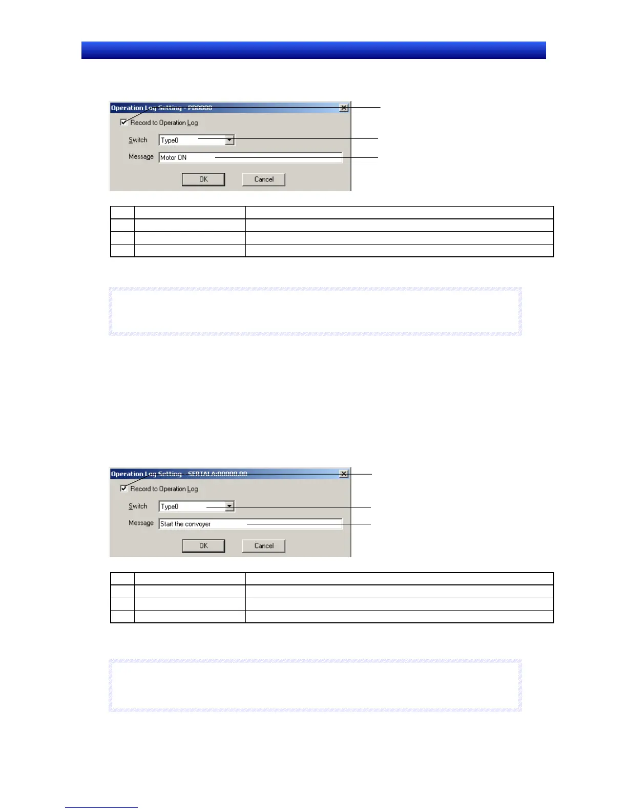 3. The Operation Log Setting Dialog Box will be displayed.