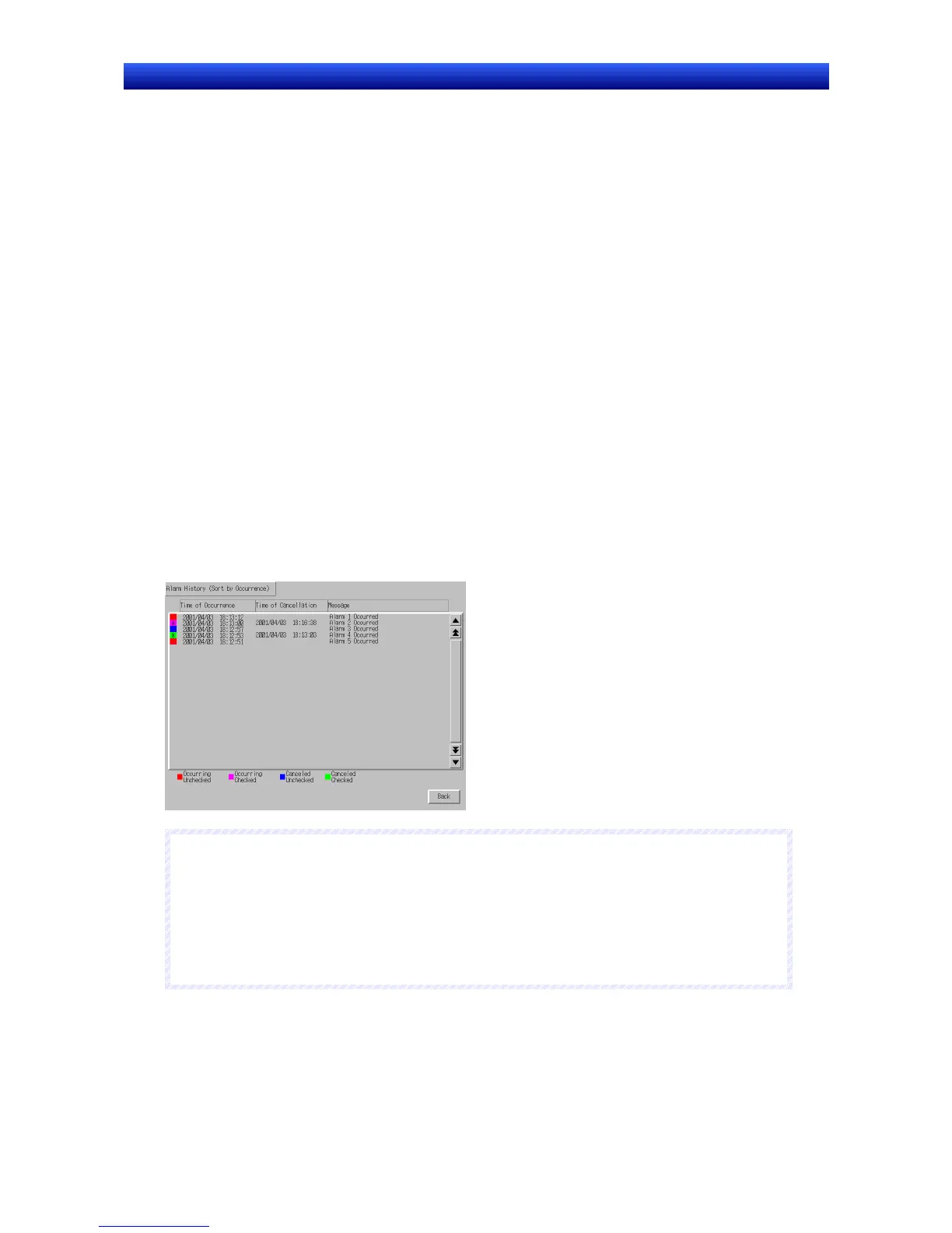 can be displayed in the order the alarms/events occurred (sort by occurrence) or in the order of