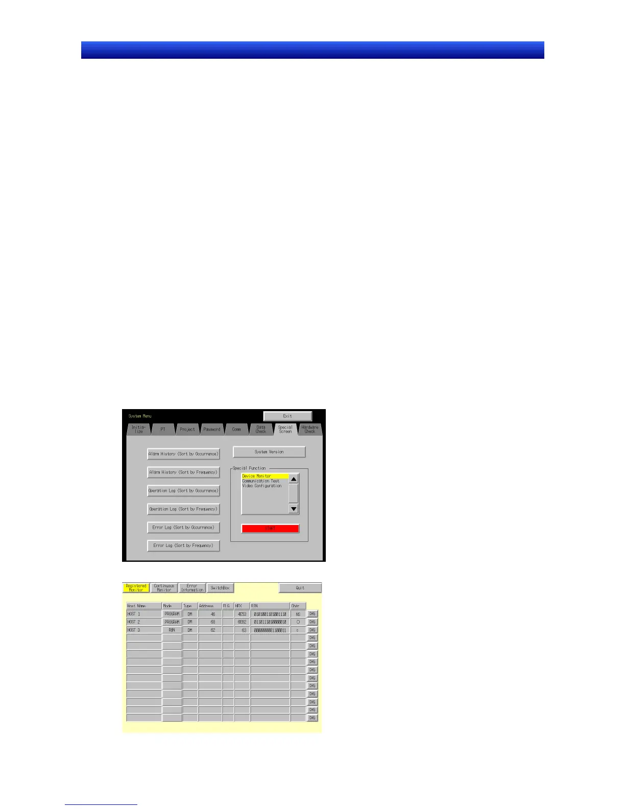 • Switching between the Bit Monitor (continuous display) and the Watch Monitor (discontinuous dis-