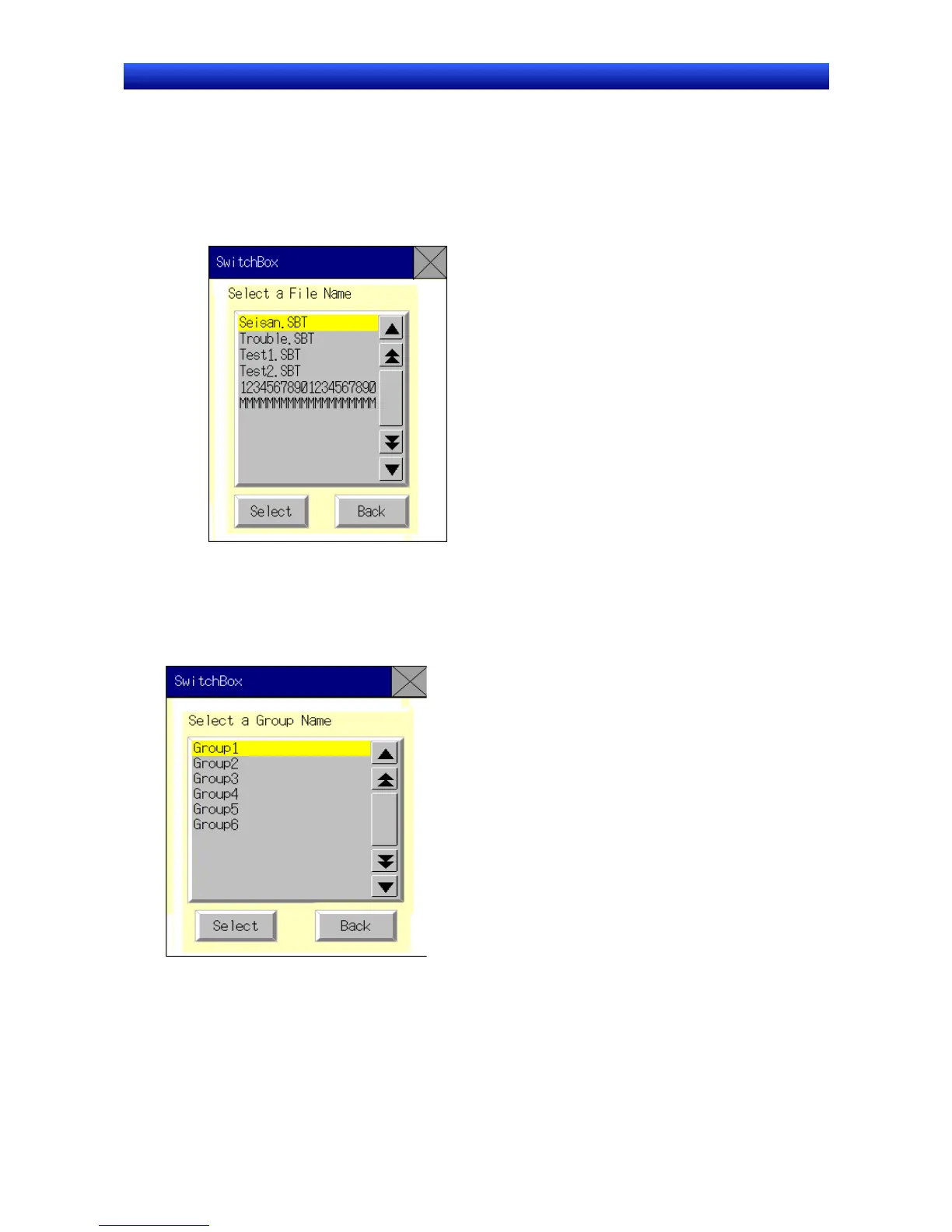 1. Press the File Name or the File Name Display Area on the Switch Box Screen.