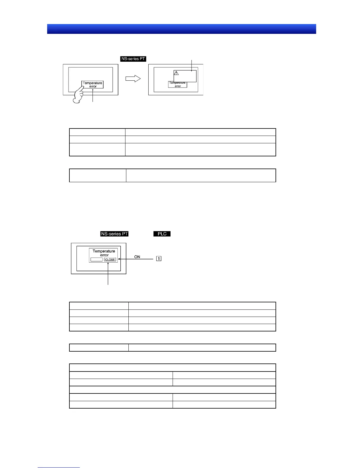 Example: To open and display an error message on a pop-up screen when the monitored PLC bit