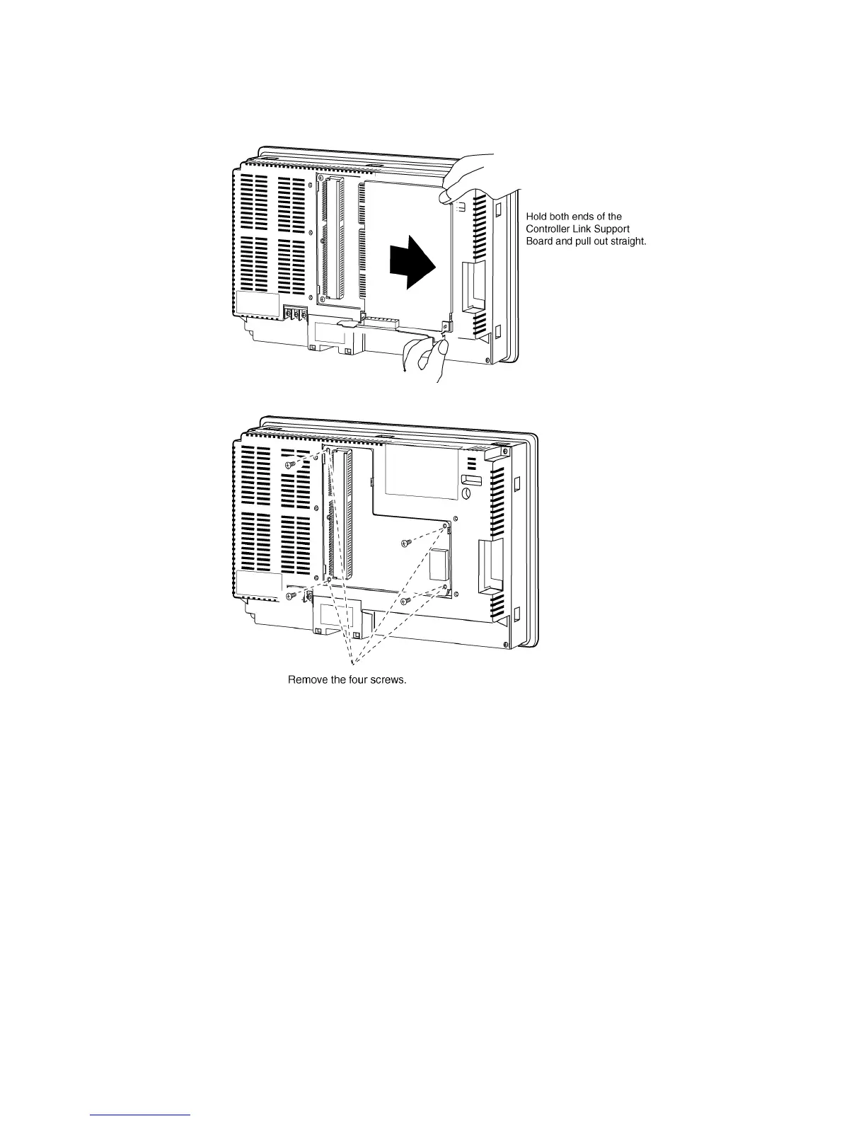both ends of the Controller Link Support Board and pull out straight.