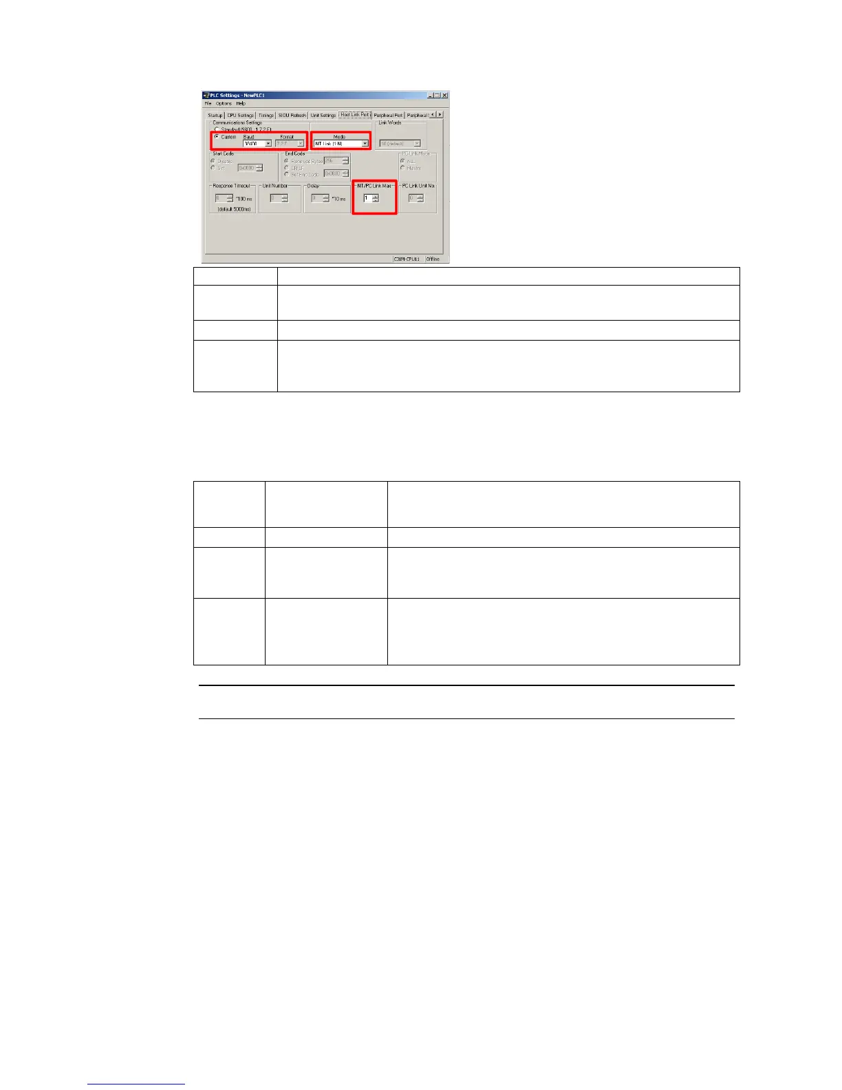 If the PT is connected to the peripheral port of the CPU Unit, make the above settings in