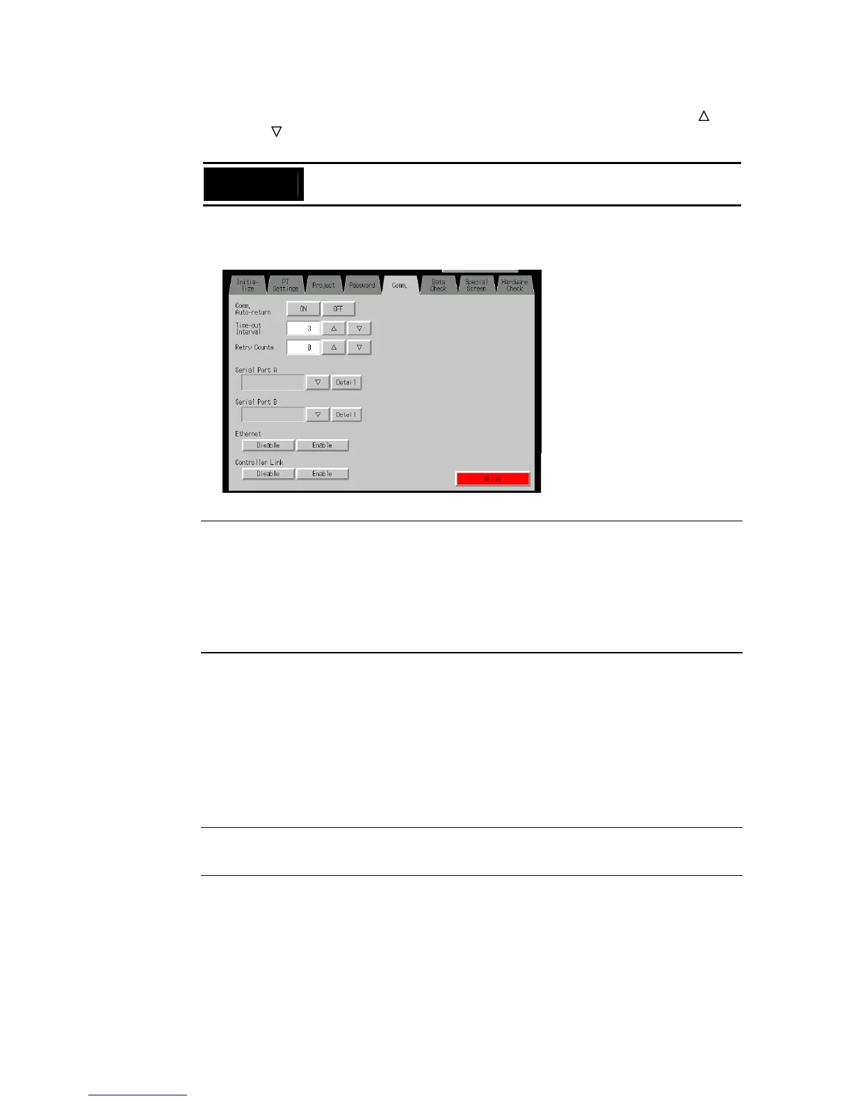 • To change the communications method for another port, the Write Button must be pressed before