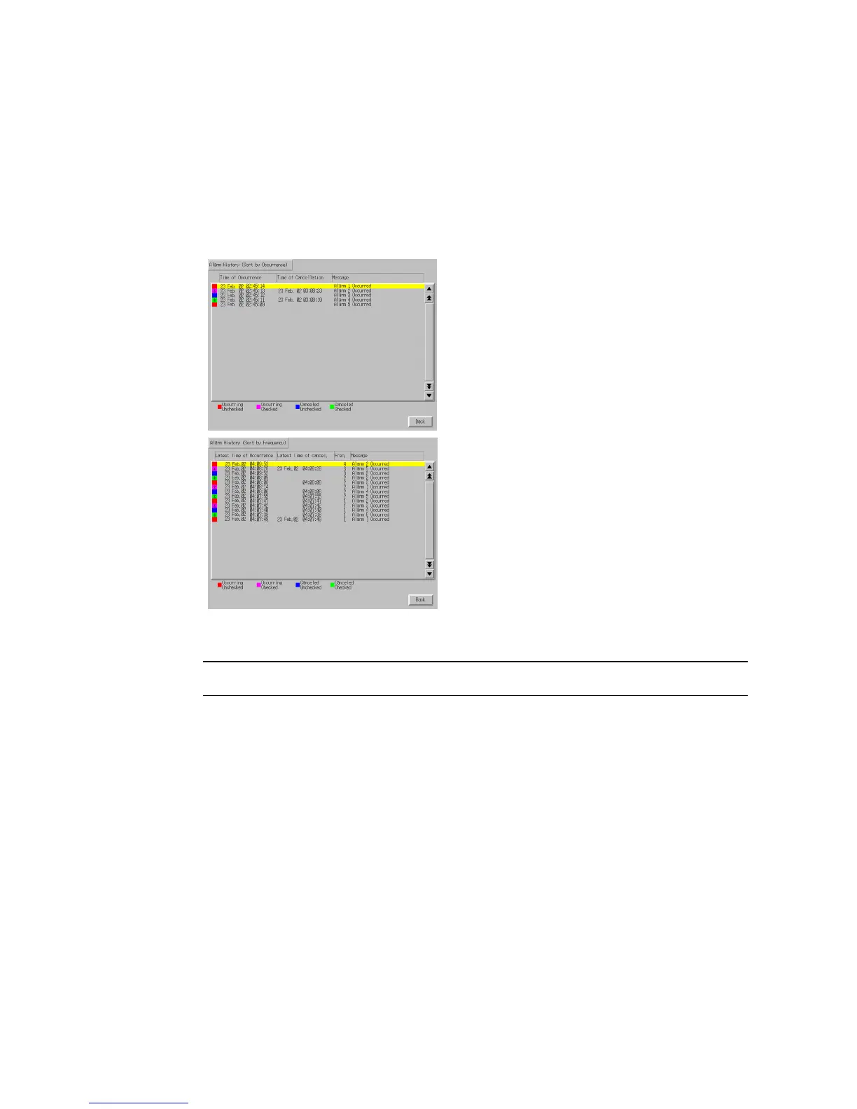 1. Press the Alarm History (Sort by Occurrence) Button or Alarm History (Sort by Frequency)