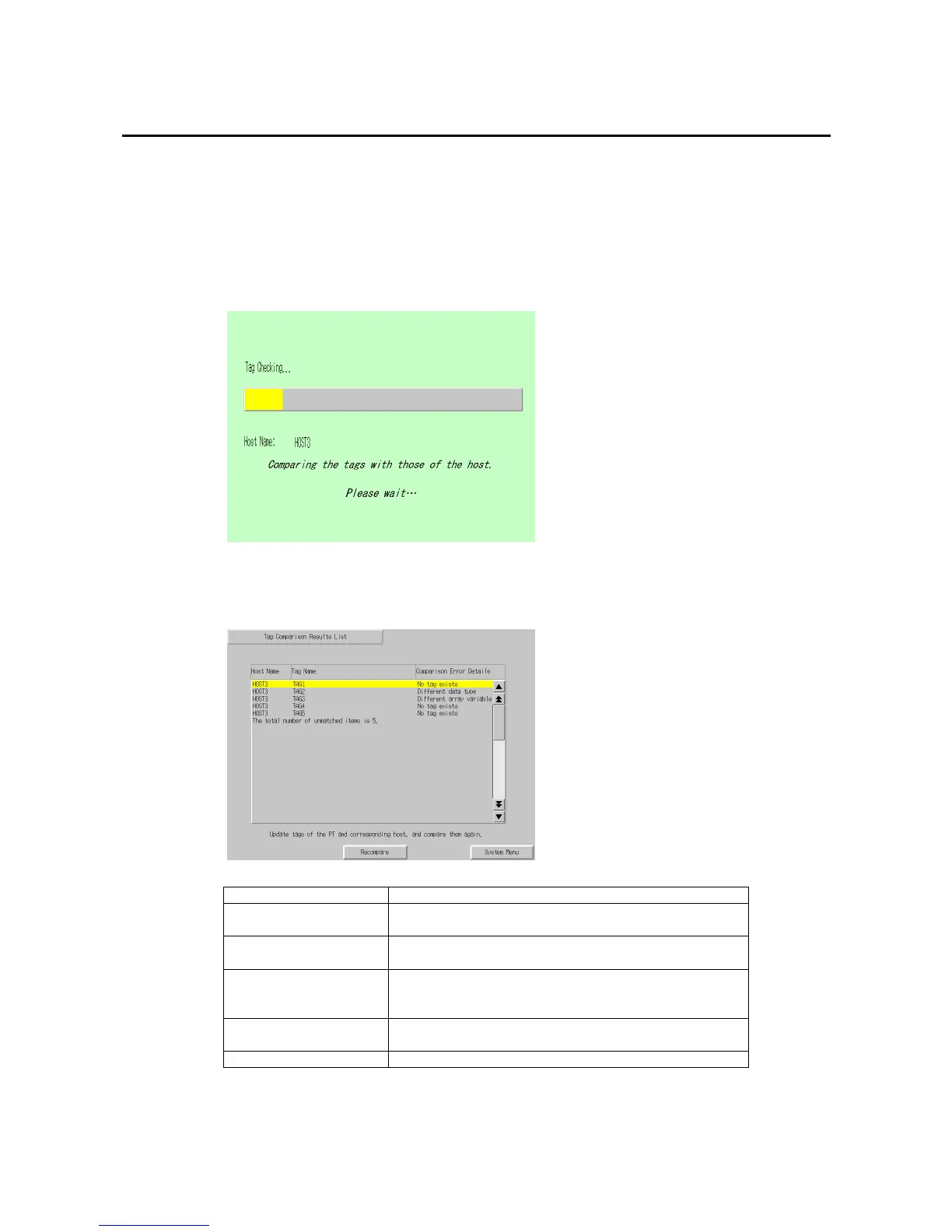 3. If the tags do not match, the Tag Comparison Results List will be displayed.