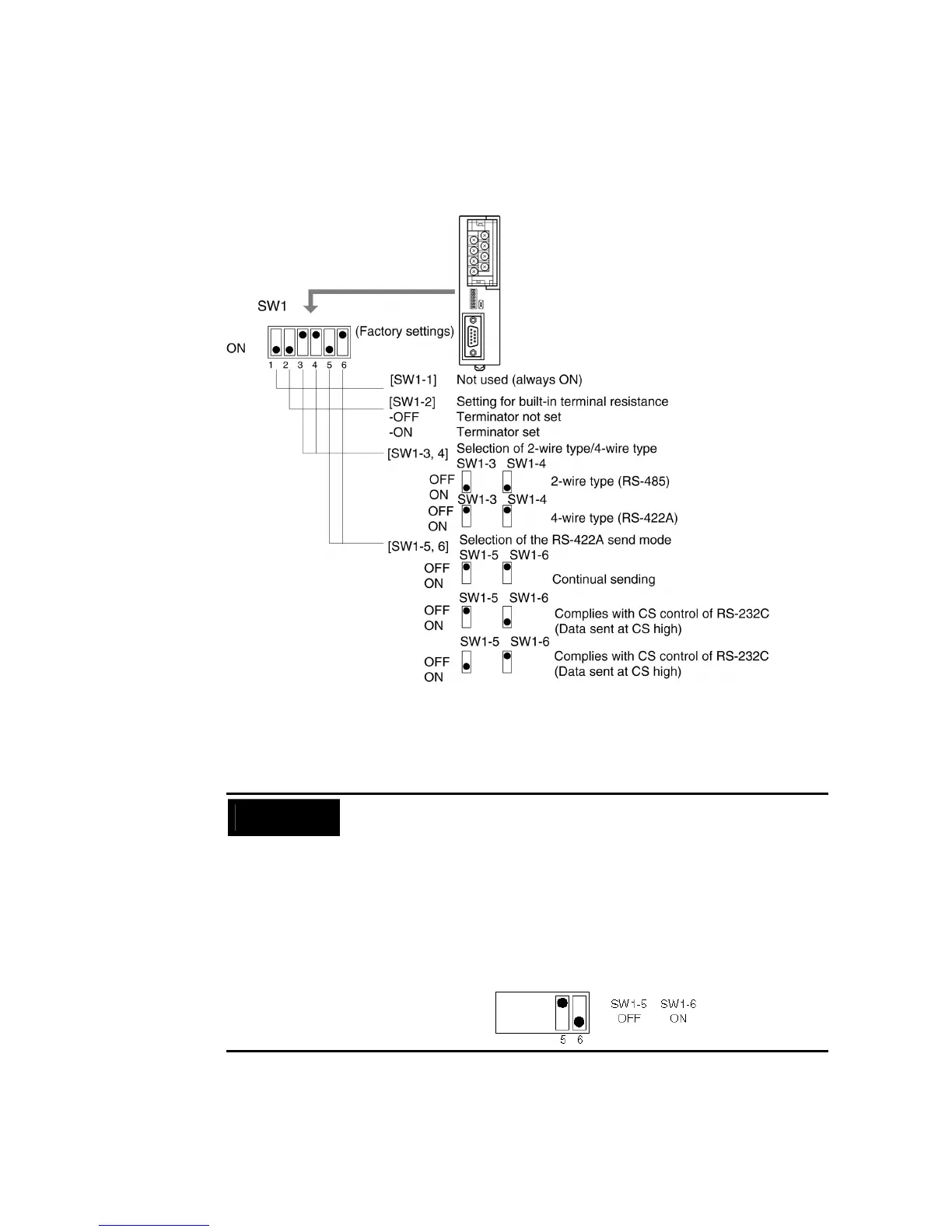 comply with CS control of RS-232C (i.e., one of SW1-5 and SW1-6 must be ON).