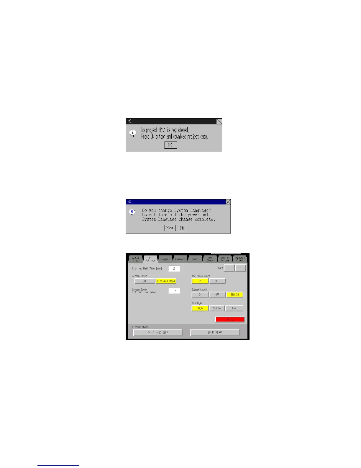 a) When the power is turned ON to the PT, the following error message will be displayed. Press the