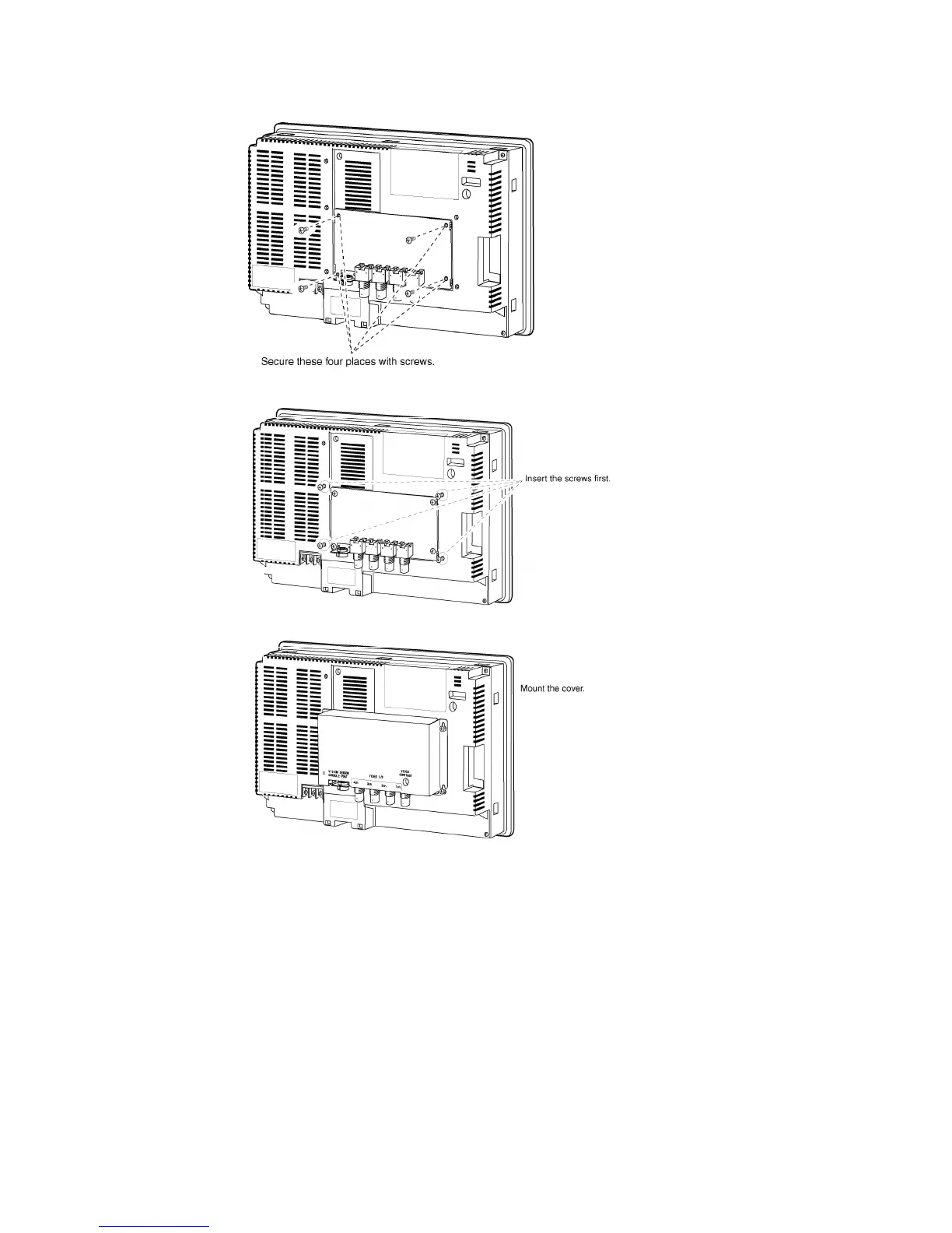 3. Insert screws in the screw holes for attaching the cover and tighten them slightly.