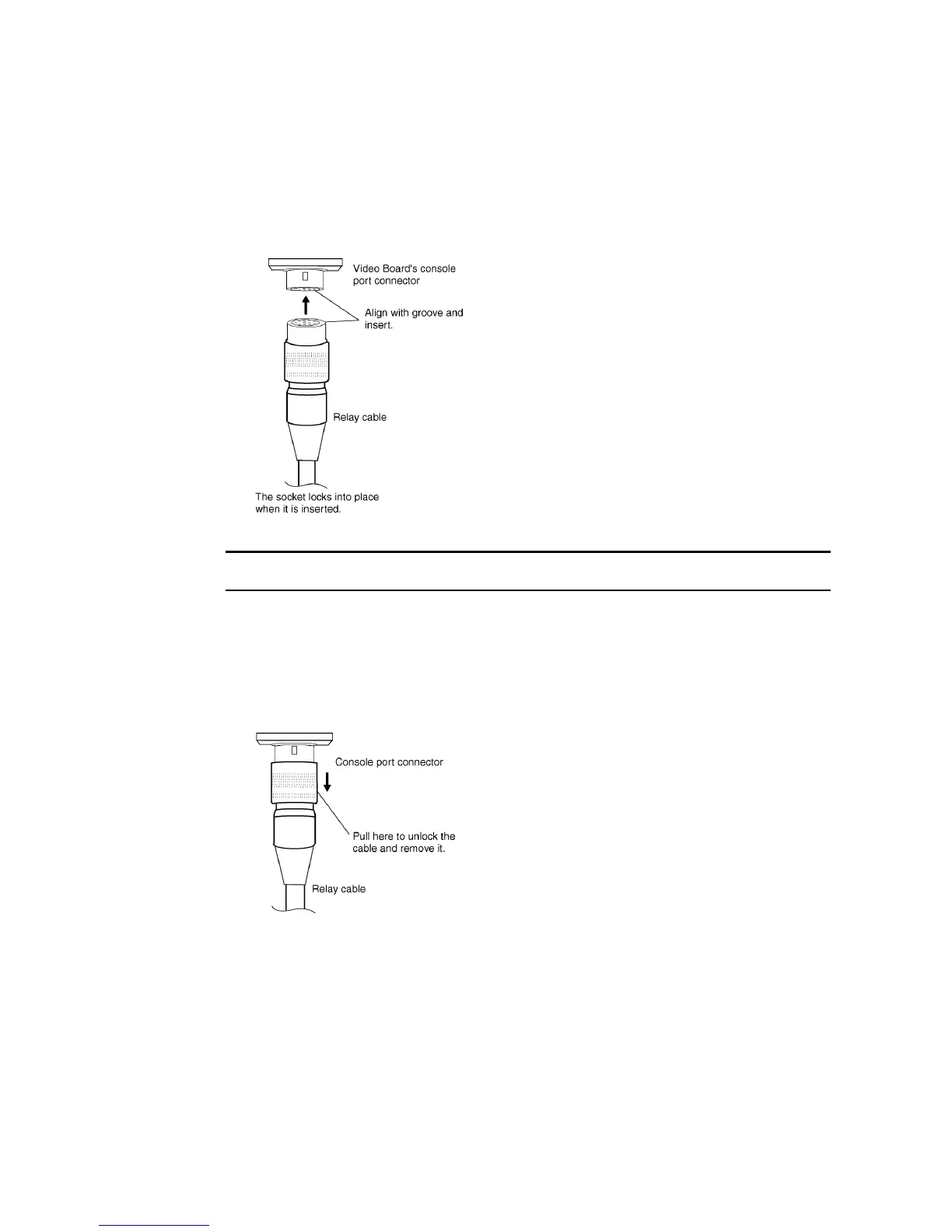 Use the following method to remove the Relay Cable from the Video Board’s console port