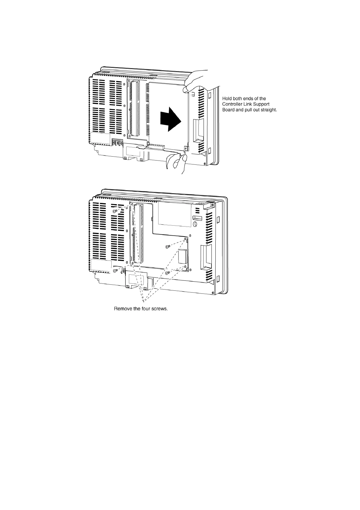 2. Disconnect the Controller Link Support Board from the connector conversion board. Hold