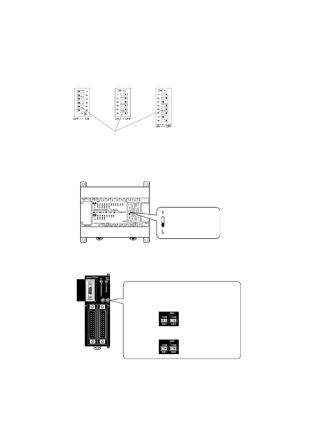 When using C200HX/HG/HE(-Z), CQM1, or CQM1H PLCs, set the DIP switch on the front