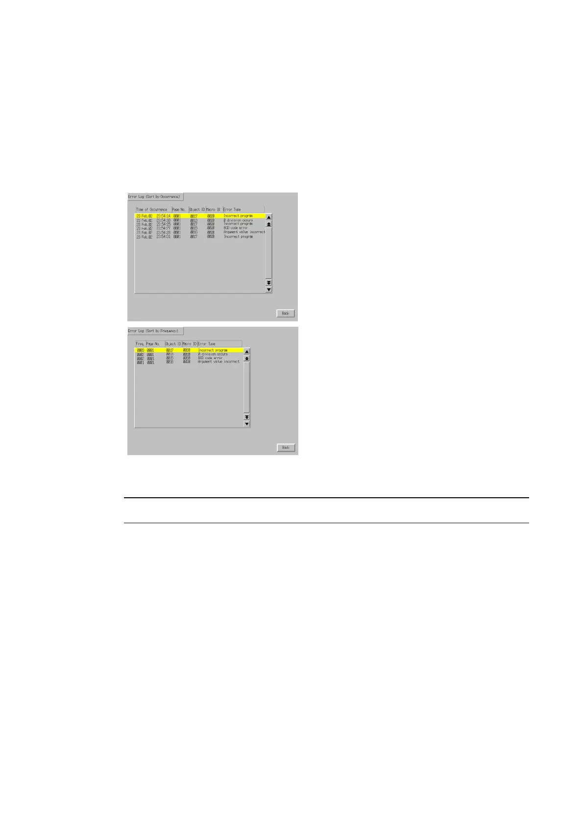 1. Press the Error Log (Sort by Occurrence) Button or Error Log (Sort by Frequency) Button to