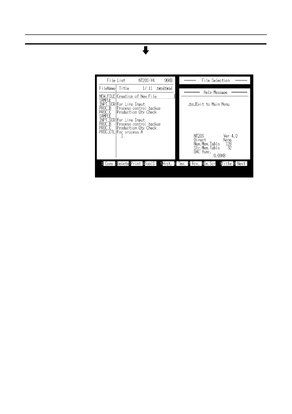 data to be transmitted to the NT20S in file units. Pressing [F10] (Next) and then